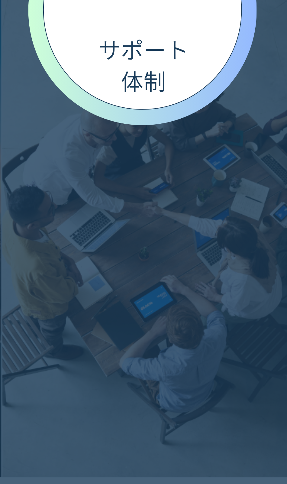 あなたの成長を支える「1人につき1人のサポート体制」。動画編集チームやデザインチーム、AI講師といった各分野の専門家が、スキル習得を個別指導で徹底的に支援します。